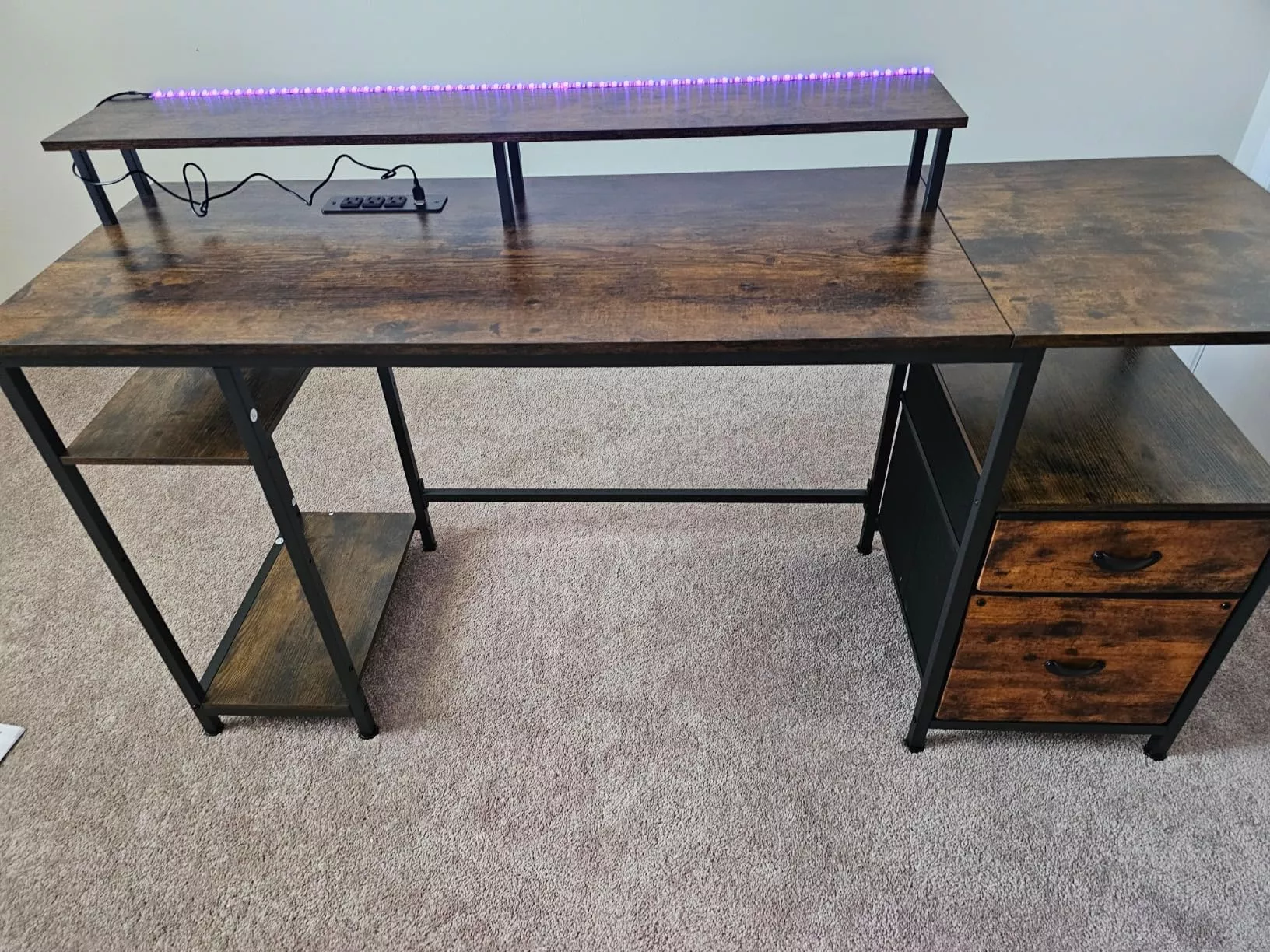 Just set up this desk in my home office and I'm blown away by its size! It's a beast of a desk that provides more than enough space for all my gadgets, paperwork, and even some decor. The industrial design adds an edge to my workspace that I didn't know it needed. Every inch of this beauty screams quality - you can feel its robustness as soon as you touch it. Not only is it solidly built, but the aesthetics are also on point with the raw charm giving off a chic and modern vibe.