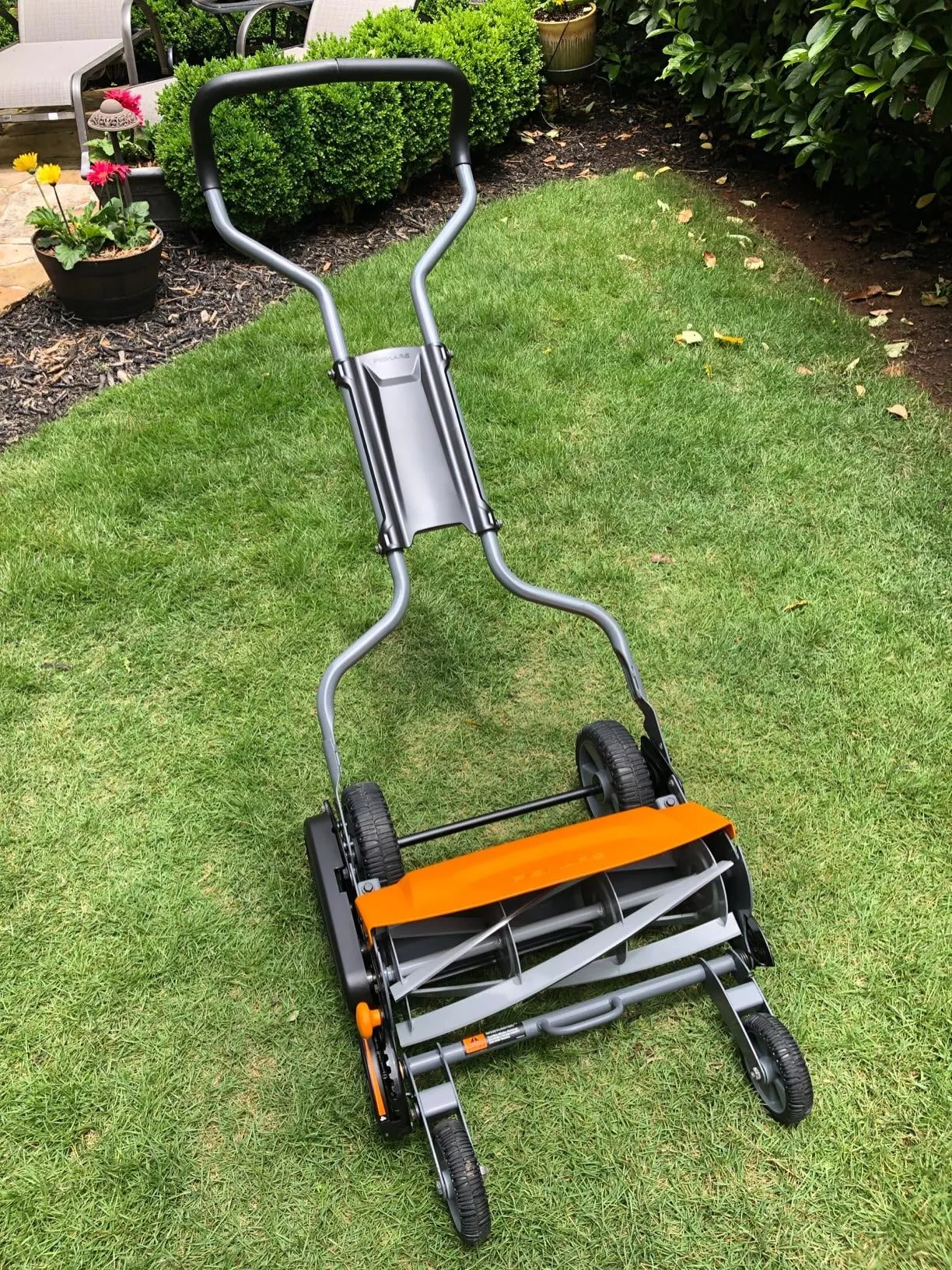 I must admit, I was a bit hesitant switch from my old gas-powered mower to this manual push one. But boy, am I glad I did! This eco-friendly alternative has proven itself to be not just good for the environment also incredibly efficient at its job. It's surprisingly easy to maneuver around the yard and does an excellent job of cutting grass evenly - no more uneven patches that were all too common with my previous mower. Plus, it's super quiet which is a huge bonus as now can mow any time without disturbing my neighbors or wildlife. The fact that it doesn't require any fuel or electricity means fewer expenses in the long run and less hassle overall - no more running out of gas mid-mow or dealing with pesky cords! And let's not forget about the added benefit of getting some exercise while doing your lawn chores – who knew you could work up a sweat while keeping your lawn looking pristine? All in all, switching to this manual push mower has been nothing short of amazing for both me and mother nature.