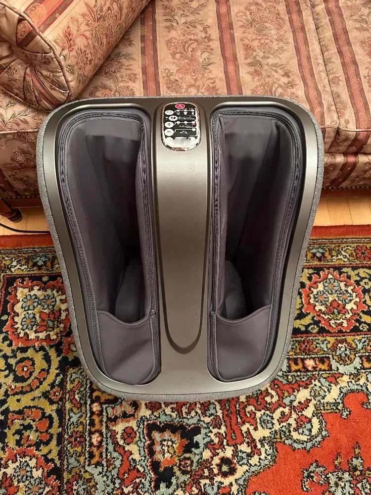 My feet and calves are absolutely living the dream with this massager. It's like they've taken a first-class ticket to heaven, and no kidding, it feels divine. After spending what seems like eternity on my feet all day long, coming home to this little slice of paradise is just what doctor ordered. The moment I slide my tired dogs into this bad boy? Pure bliss! The tension in my muscles starts melting away faster than ice cream on a hot day. You can almost them sighing with relief as the massager works its magic. And believe me when I say that it doesn't stop at just soothing your soles; oh no siree! This thing takes care of your calves too. Now imagine feeling those knots untangling one by one as the massager kneads through each muscle fiber of your calf. That's right folks - we're talking about an all-around leg pampering session here that leaves you feeling lighter than air! And if you think relaxation is where it stops, then buckle up because there’s more goodness packed into this gem than meets the eye. It’s not only super relaxing but also helps improve blood circulation which makes for healthier legs overall. So yeah, after being on your toes all day hustling and bustling around town or standing at work for hours straight without much respite - having something like this waiting at home for you? Absolute game changer! In short (or rather long), if you want to give your weary legs some well-deserved TLC after a hard day's grind - look no further! This massager is definitely one must-have item that should be high up on everyone's wishlist.