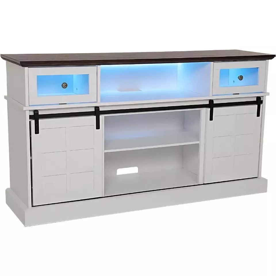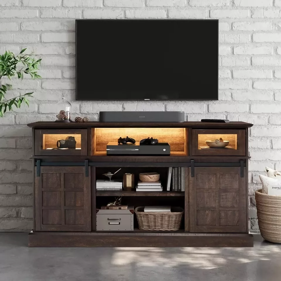 This entertainment center is more than just a TV stand—it’s an immersive experience. The built-in electric fireplace offers a cozy, inviting glow without the mess or danger of a traditional fireplace. The RGB lighting not only highlights your space but also syncs with your music to create dynamic, party-like atmospheres or soft, romantic settings. Designed for both practicality and allure, this TV stand brings warmth and style to any home décor.