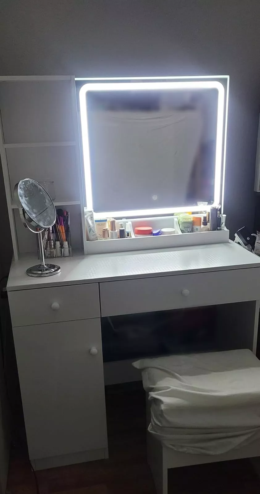 Whether preparing for a day at work or an evening out with friends, our Luxurious Makeup Vanity Desk offers the perfect setting for beautifying yourself. Its versatility makes it suitable for any time of day or night, enhancing your makeup routine with ease and style.