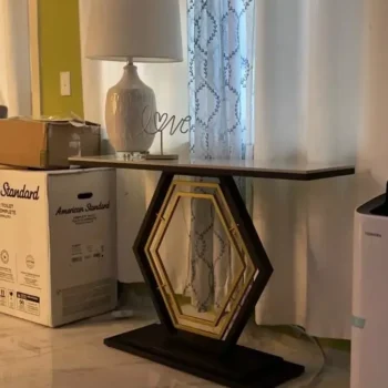 Man, talk about a game changer! This console table has revamped my living room and brought it right into 21st century. It's got this sleek modern vibe that just screams sophistication. I mean, who knew furniture could be so transformative? The first thing you notice is the sintered tabletop - what an absolute stunner! It's not only drop dead gorgeous but also super practical. You know how some tables can't handle hot items? Well, this bad boy laughs in the face of high temperatures. So go ahead, place your steaming cup of joe or piping hot pizza box on it without worry. This table won't flinch. And let's not forget to mention its aesthetic appeal - it’s like having a piece of art in your home that also serves a purpose (other than making your friends green with envy). The design is clean and minimalistic which makes it fit seamlessly into any decor scheme - from ultra-modern to rustic chic. But here's where things get really cool: despite its delicate appearance, this console table is as sturdy as they come. No wobbling or shaking when you put stuff on it – we’re talking rock solid stability here folks! So yeah, if you're looking for something that'll add a touch of class and functionality to your space while standing up to everyday use like a champ then look no further mate! This console table ticks all those boxes effortlessly.