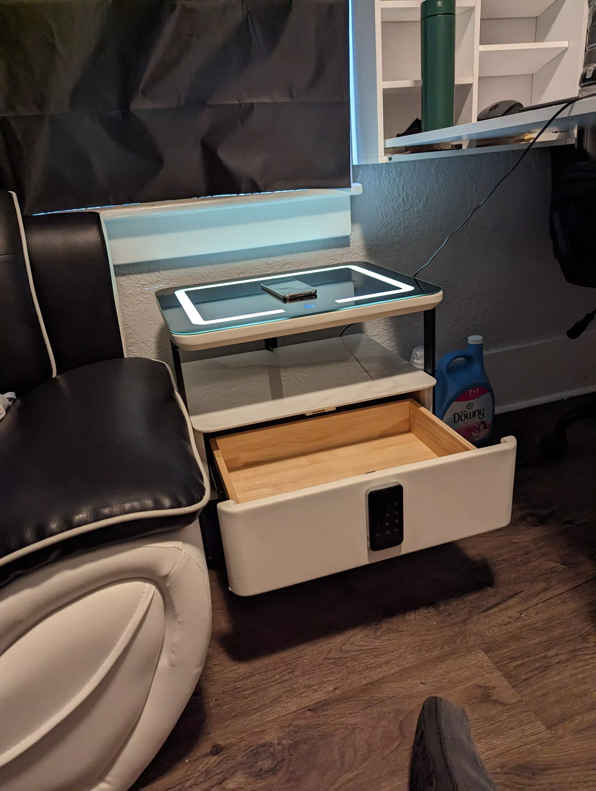I recently purchased this nightstand, and I’m quite pleased with my decision. The design is sleek and trendy, fitting perfectly with my Nordic-themed bedroom. The storage space is ample for my needs, with enough room for my books, a lamp, and some personal items. The smart features are a great addition, especially the built-in charging station, which keeps my devices powered up without cluttering the space with cords. The nightstand’s build quality is impressive. It feels sturdy and well-constructed, promising durability. However, the assembly instructions could have been clearer. It took me a bit longer than expected to put it together, but once it was done, it looked fantastic. The neutral color palette makes it versatile, blending seamlessly with different decor styles. The materials used are high quality, giving it a luxurious feel. Overall, this nightstand combines functionality with a modern design, making it a great addition to any bedroom. I would recommend it to anyone looking to upgrade their bedroom furniture with a stylish and practical piece.