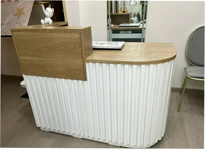 This reception desk is ideal for businesses aiming to create a welcoming yet professional ambiance. It’s perfect for high-traffic areas, offering both functionality and a visually pleasing aesthetic. Whether you’re refurbishing your office or setting up a new shop, this desk will meet and exceed your expectations.