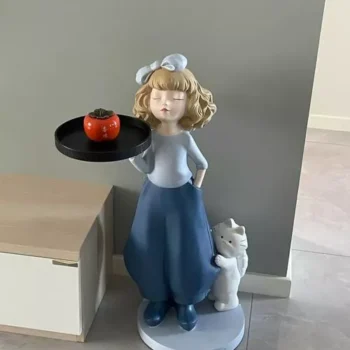 Our Nordic Girl Tray Sculpture is most effective in living rooms, dining areas, or hallways where it can serve both decorative and functional purposes. Place it beside a TV cabinet to store remote controls or on a study table to organize your essentials stylishly. Its versatility extends to commercial settings such as boutique lobbies or chic restaurants, where it adds a sophisticated touch.