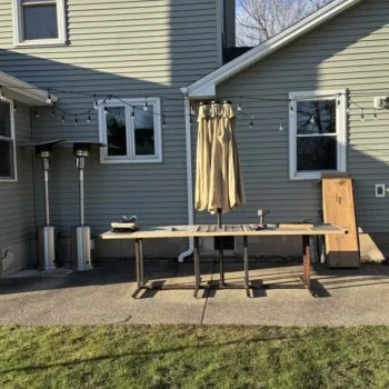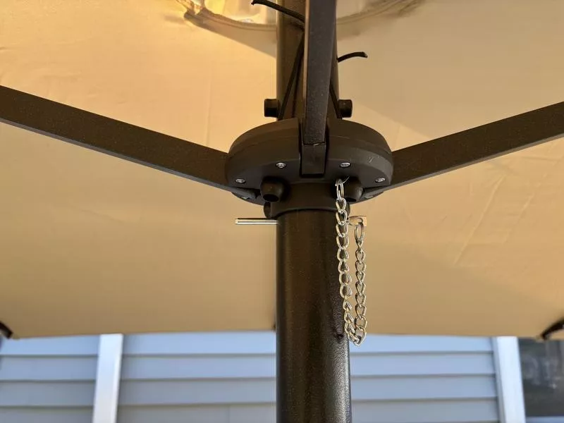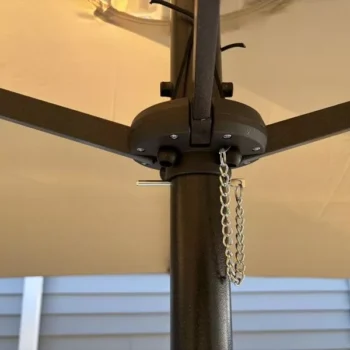 I built a large outdoor table to seat 10 people last year. This umbrella is ideal for this large area application. I was a bit skeptical at first because there were no images of it in the closed position. I was worried that it would be way to bulky when we didn’t want the umbrella open but that is not the case. I’m rather impressed on how compact the mechanism is. The lights are a nice feature and I really like the design/placement of the switch. I also wasn’t expecting it, but it came with a really nice storage bag for the off season. One thing to note, the post that goes through your table must be a 2” hole. When I received my umbrella one of the plastic parts for the base was cracked. This would have normally lead to a lower number of stars but the customer service was fantastic and sent a new part out immediately. My only real criticism of this product is that the crank mechanism feels weak. I mean to say that it feels like it is the exact same one used to open smaller umbrellas. Each time I crank it up I think to myself, is this going to break? It does have a nice pin to hold the weight when it’s up so the mechanism isn’t holding all the weight all the time, but I am 6’ tall and my wife who is 5’4” can not quite reach it.