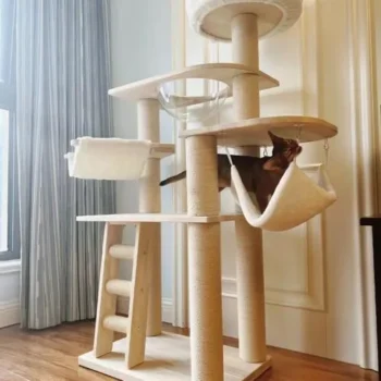 Don’t wait any longer! Elevate your cat’s indoor experience with our Deluxe Wooden Cat Tower. It’s more than just a cat tree; it’s a haven of happiness for your furry family member. Add to cart now and bring joy to your cat’s daily life!